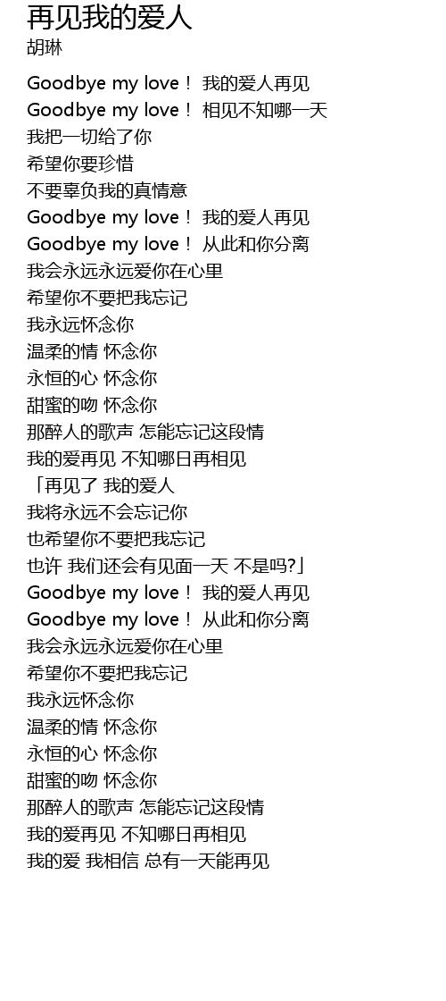 | [02:33.17] | Goodbye my love! wǒ de ài rén zài jiàn |