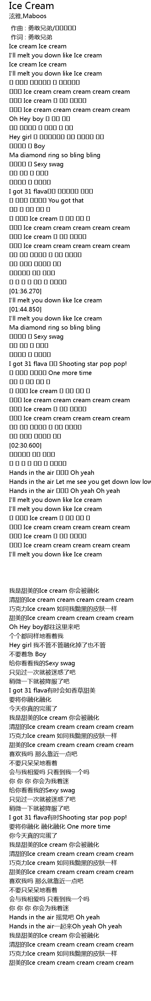 | [01:59.900] | I got 31 flava 때론 Shooting star pop pop! |
