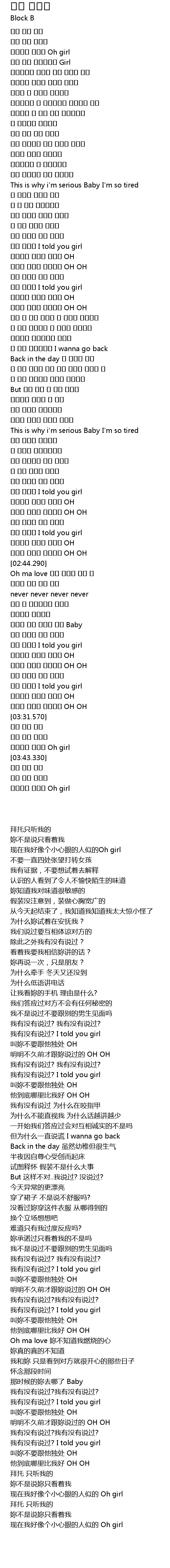 | [03:38.940] | 쪼잔한놈 같자나 Oh girl |