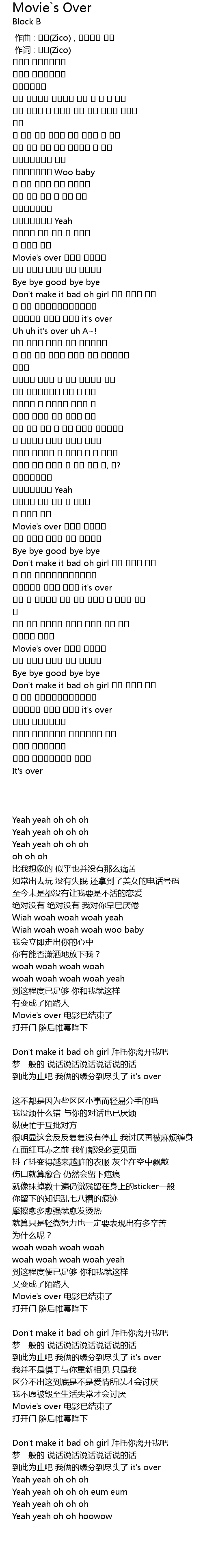 | [01:04.440] | Movie's over 영화는 끝났어요 |