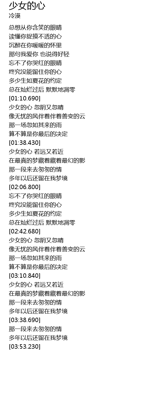 | [01:12.640] | 少女的心 忽阴又忽晴 |