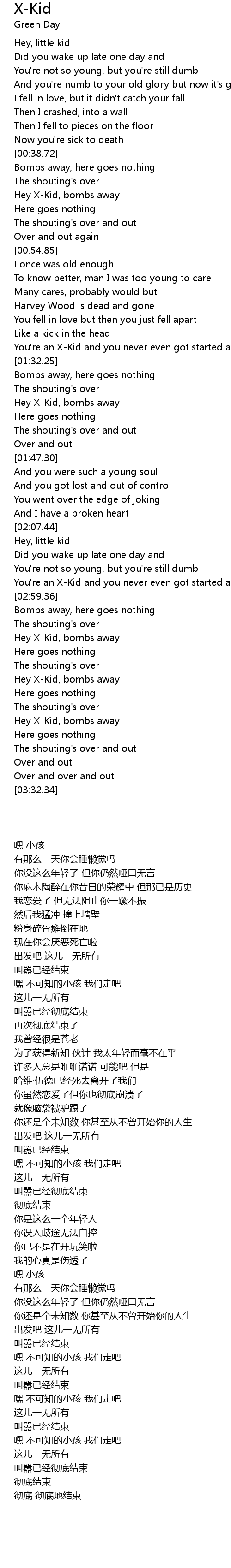 | [02:52.45] | You're an X-Kid and you never even got started again |
