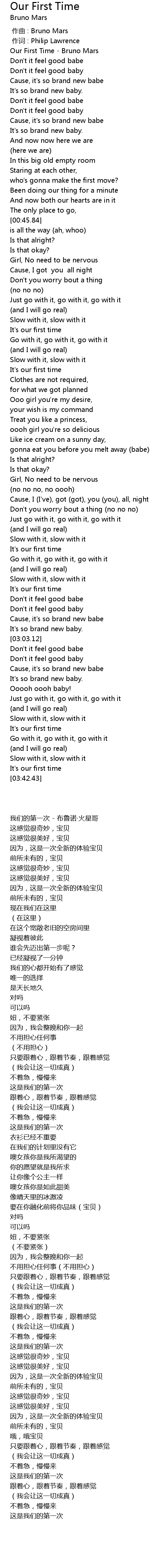 | [00:00.40] | Our First Time Bruno Mars |