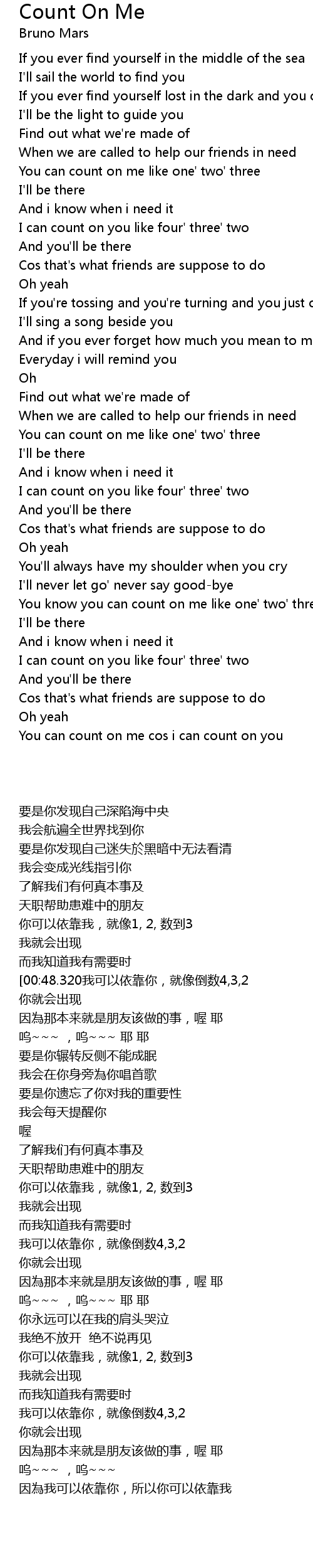 You can count on me cos i can count on you |