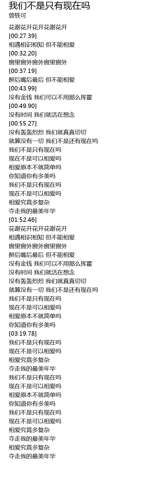 | [02:58.62] | wǒ men bú shì zhǐ yǒu xiàn zài ma |