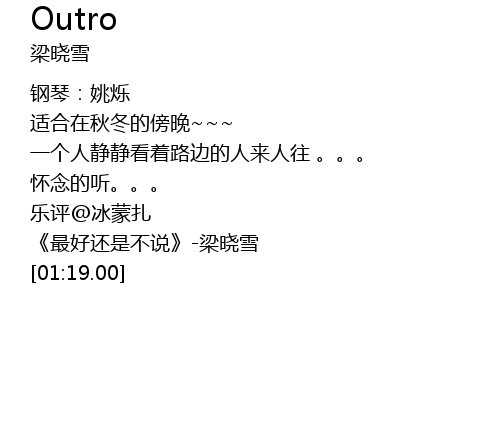 | [01:05.00] | 《最好还是不说》-梁晓雪 |