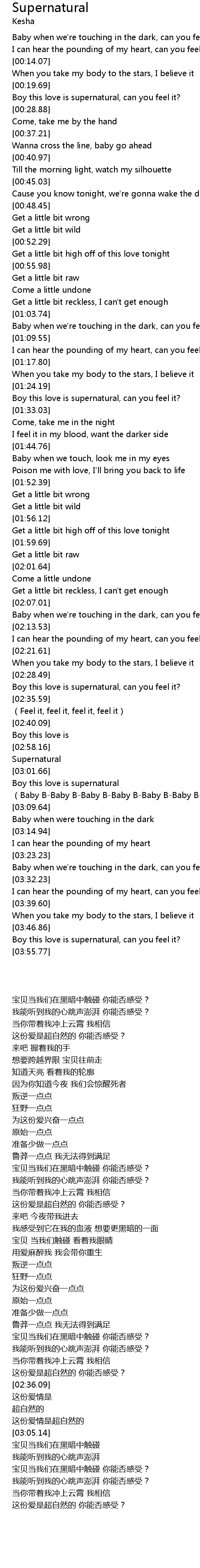 | [03:48.93] | Boy this love is supernatural, can you feel it? |