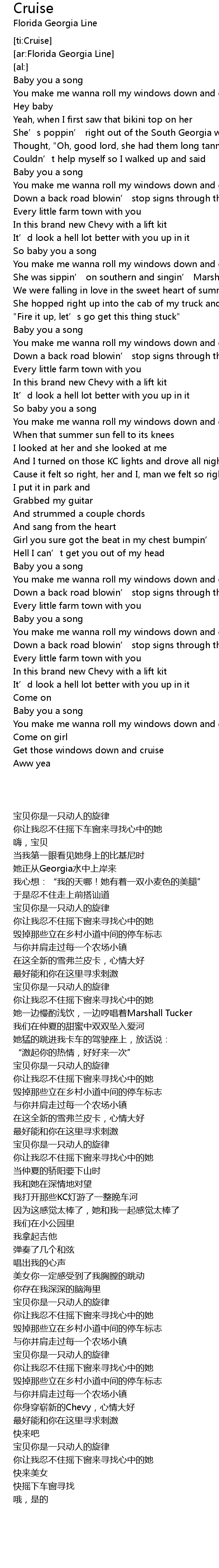 | [02:28.44] | You make me wanna roll my windows down and cruise |