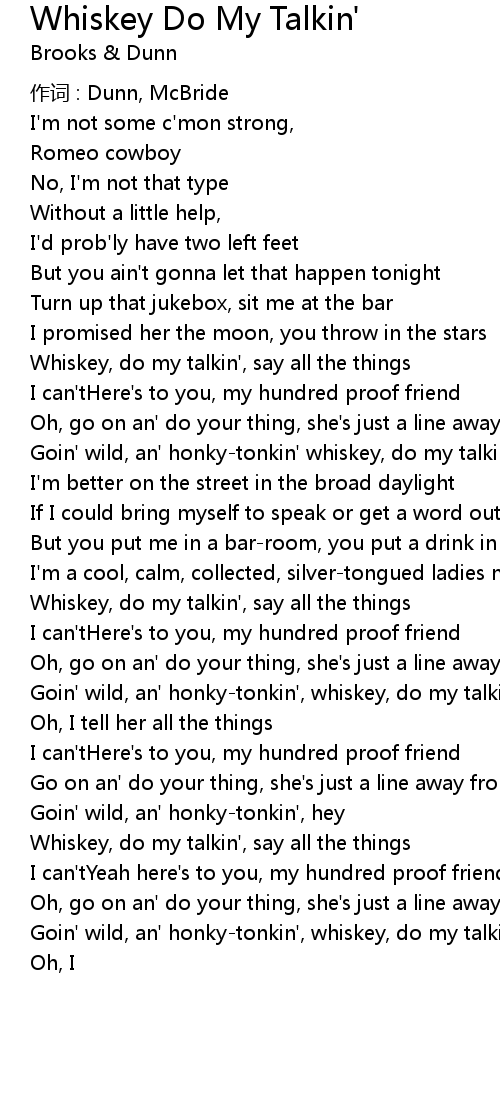 | Goin' wild, an' honky-tonkin' whiskey, do my talkin' | |
