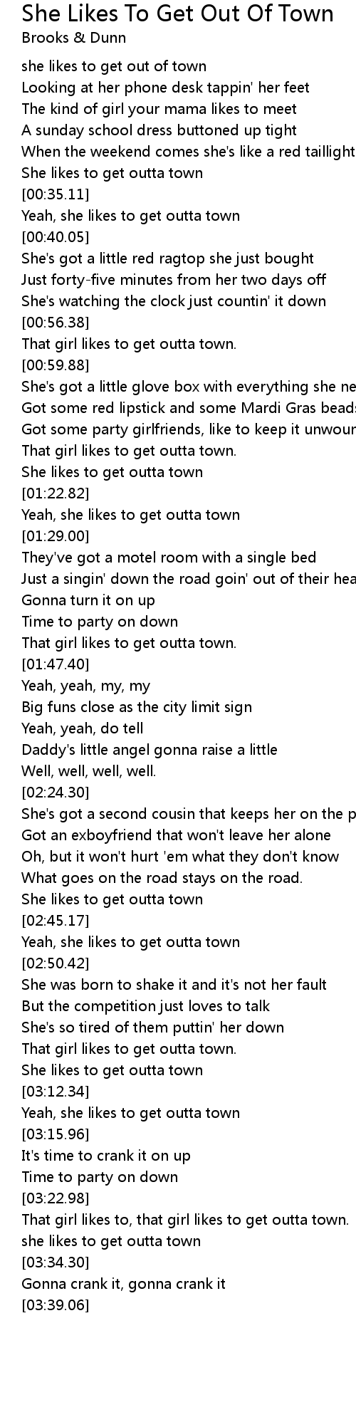That girl likes to, that girl likes to get outta town. |