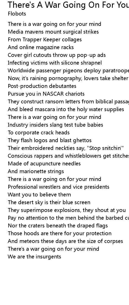 There's A War Going On For Your Mind -  (Album Version) There' s A War Going On For Your Mind    Album Version Lyrics
