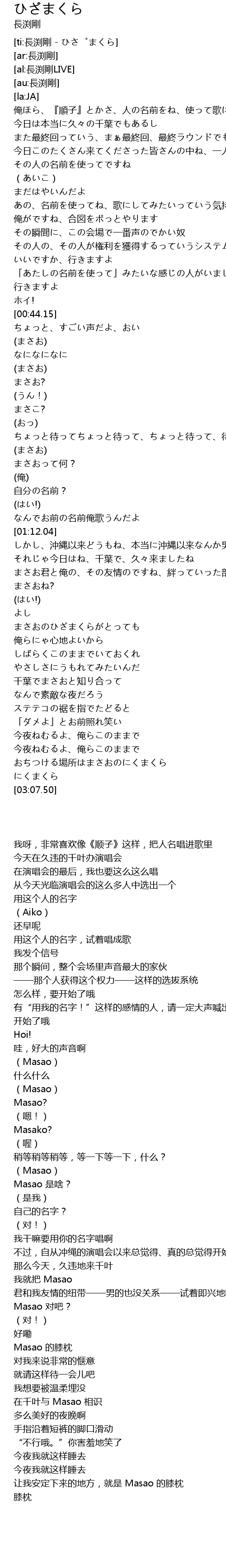| [01:10.64] | なんでお前の名前俺歌うんだよ |