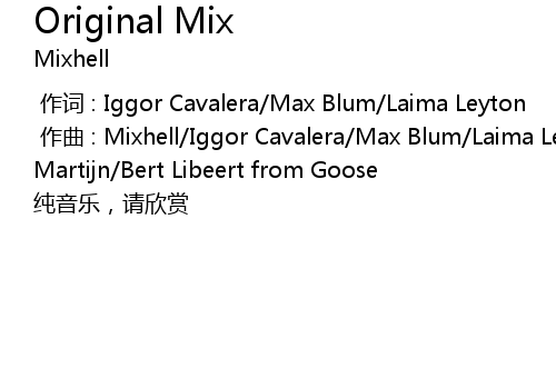 | [00:01.000] | zuo qu : Mixhell Iggor Cavalera Max Blum Laima Leyton Dave Martijn Bert Libeert from Goose |