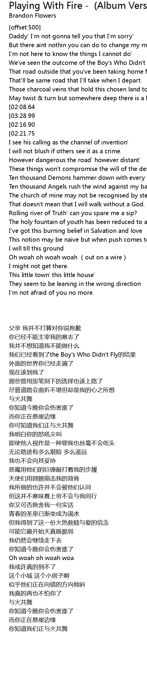 | [04:43.77][02:08.64] | Playing with fire |