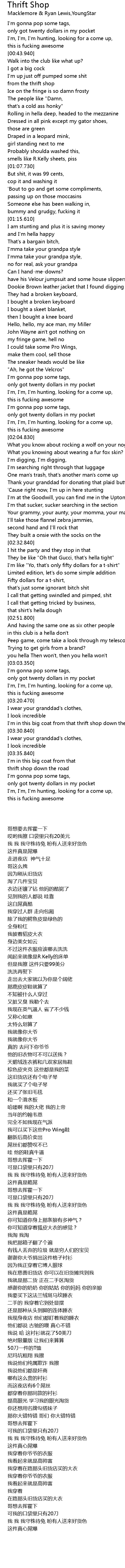 I'm in this big coat from that thrift shop down the road |