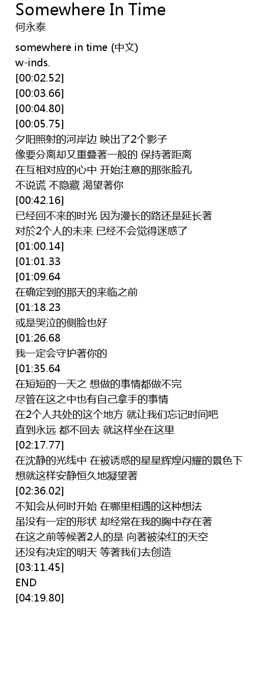 | [03:53.51][01:26.68] | 明天我一定会刻划出来的 我一定会守护著你的 |