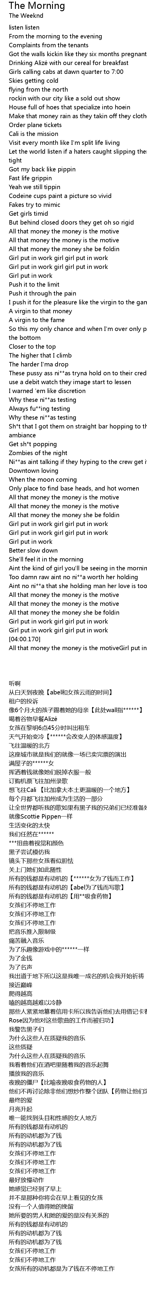 | [01:12.130] | Let the world listen if a haters caught slipping then my ni**as stay tight |