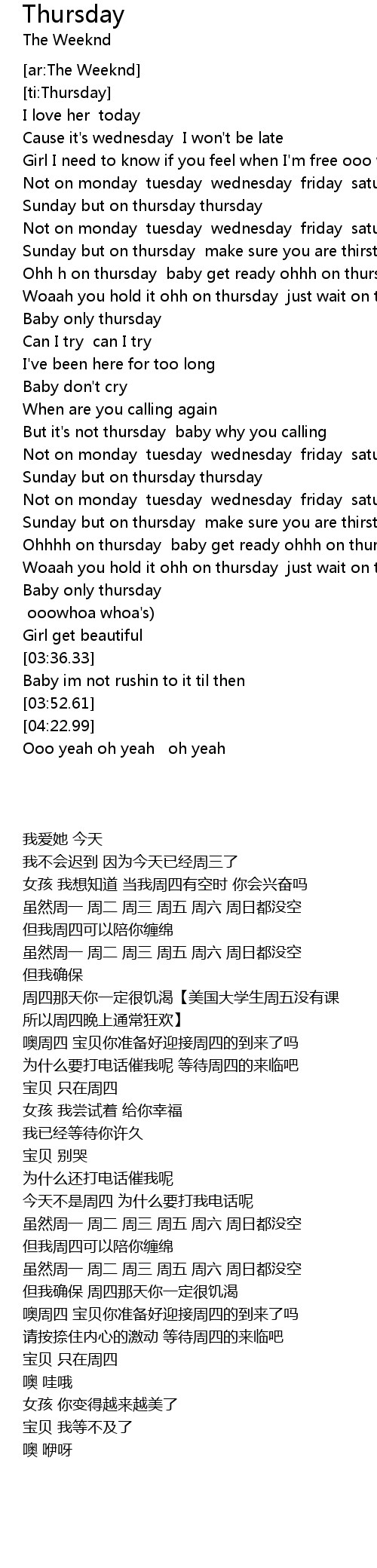[01:34.85] Woaah you hold it ohh on thursday just wait on thursday