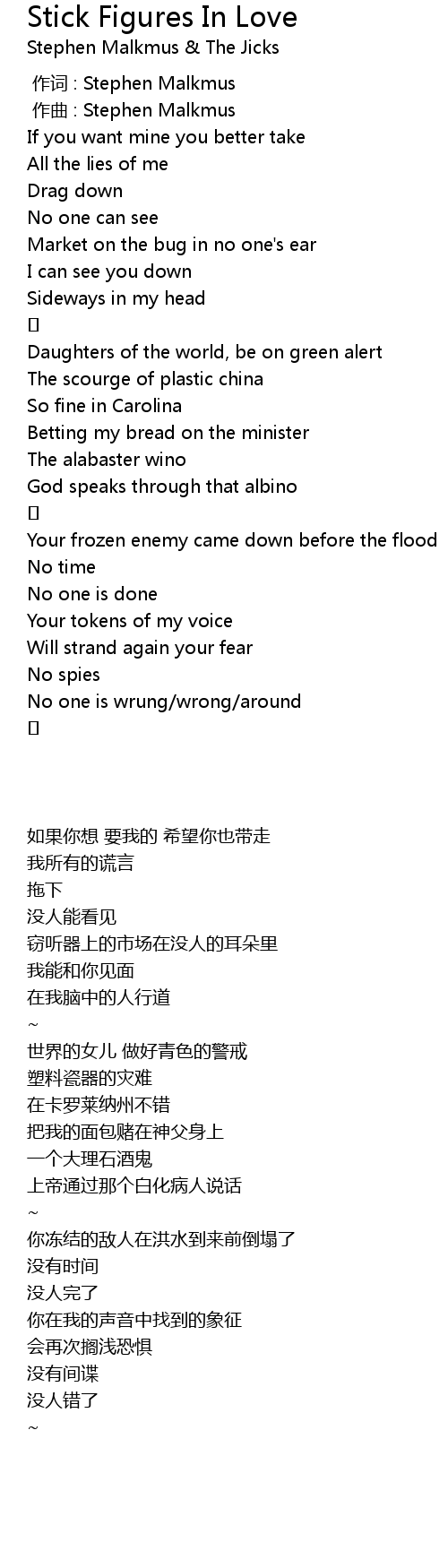 | [00:01.000] | zuò qǔ : Stephen Malkmus |