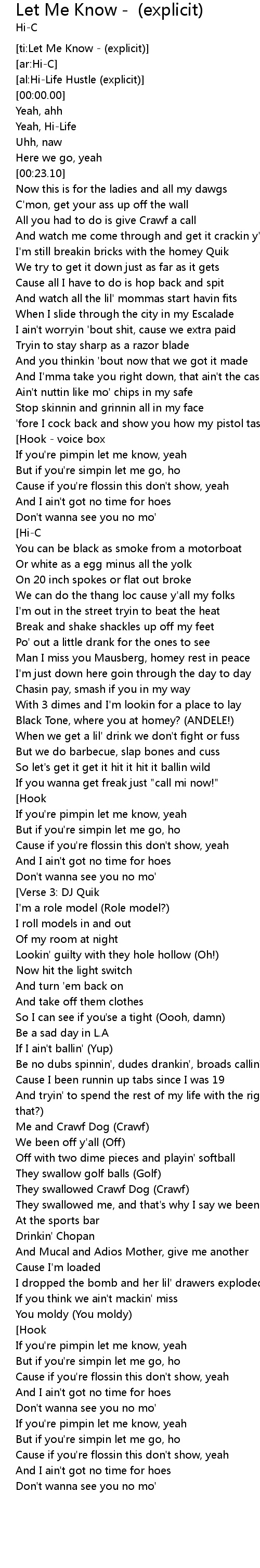 Let Me Know -  (explicit) Let Me Know    explicit Lyrics