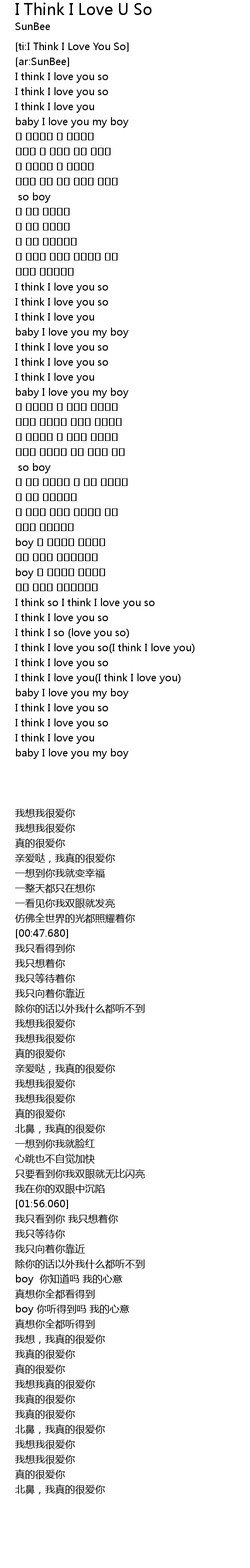 | [02:51.130] | I think I so love you so |