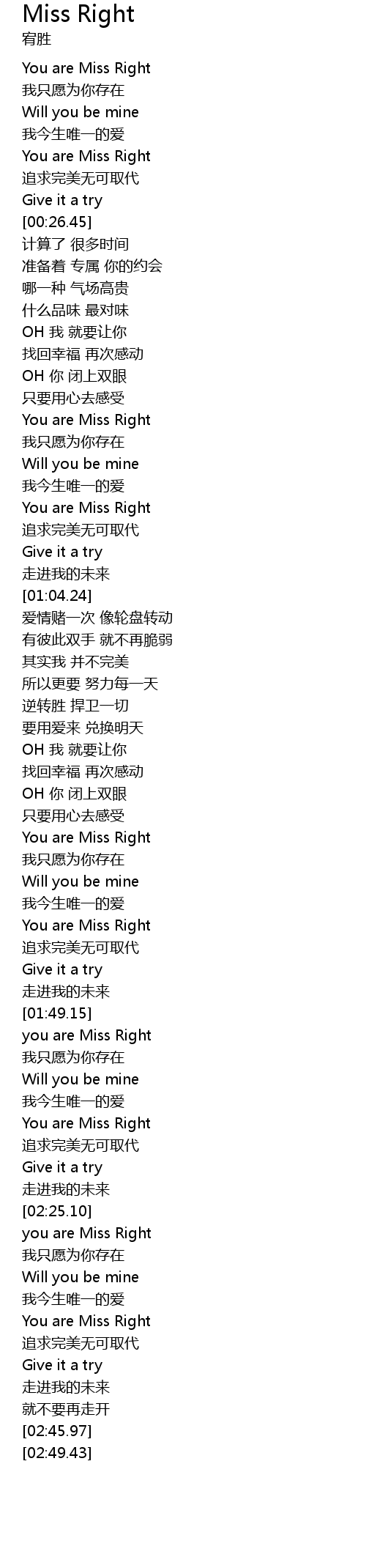 | [01:43.01] | zhuī qiú wán měi wú kě qǔ dài |