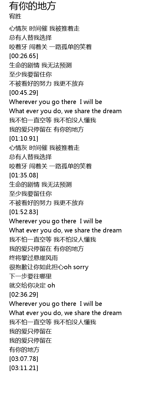| [03:05.53] | yǒu nǐ de dì fāng |
