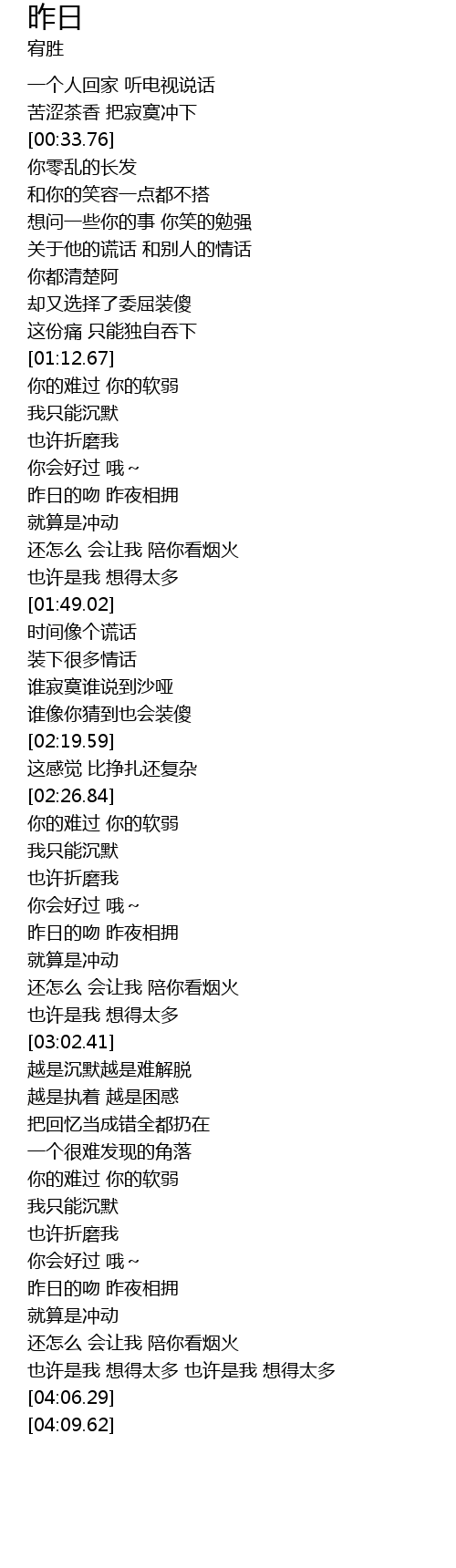 | [01:31.74] | 昨日的吻 昨夜相拥 |