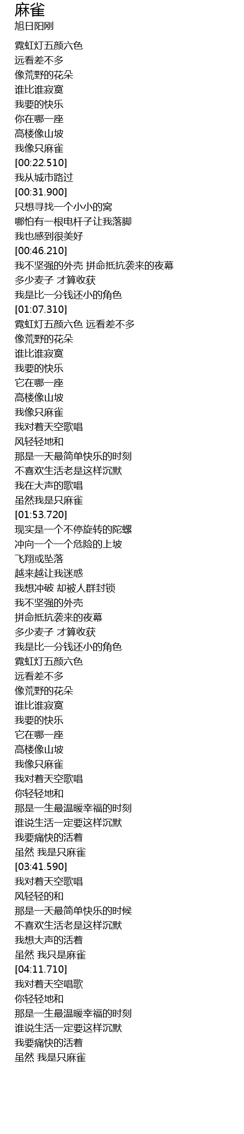 | [01:24.910] | wǒ xiàng zhǐ má què |