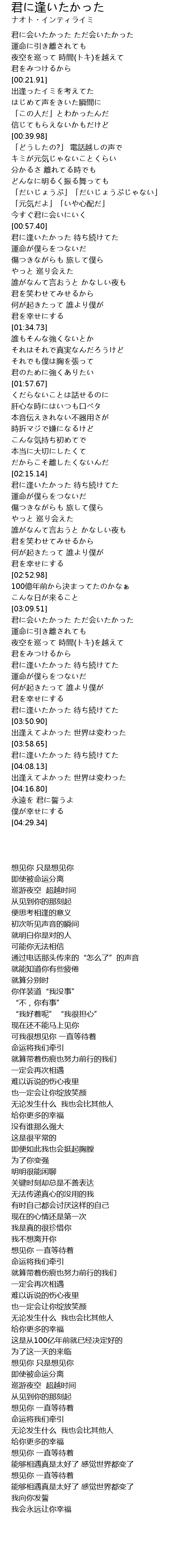 君に会いたかった ただ会いたかった |