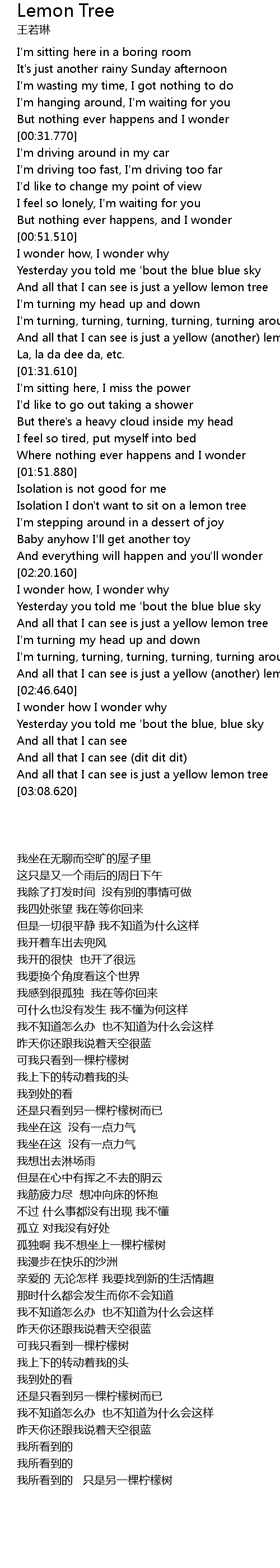 | [03:01.190] | And all that I can see is just a yellow lemon tree |