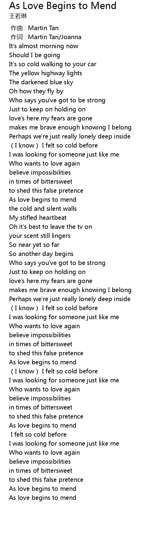 | [00:01.00] | 作词 : Martin Tan/Joanna |