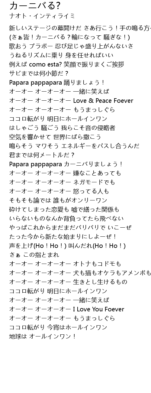 | (さぁ皆!カーニバる?輪になって 騒ぎな!) | |