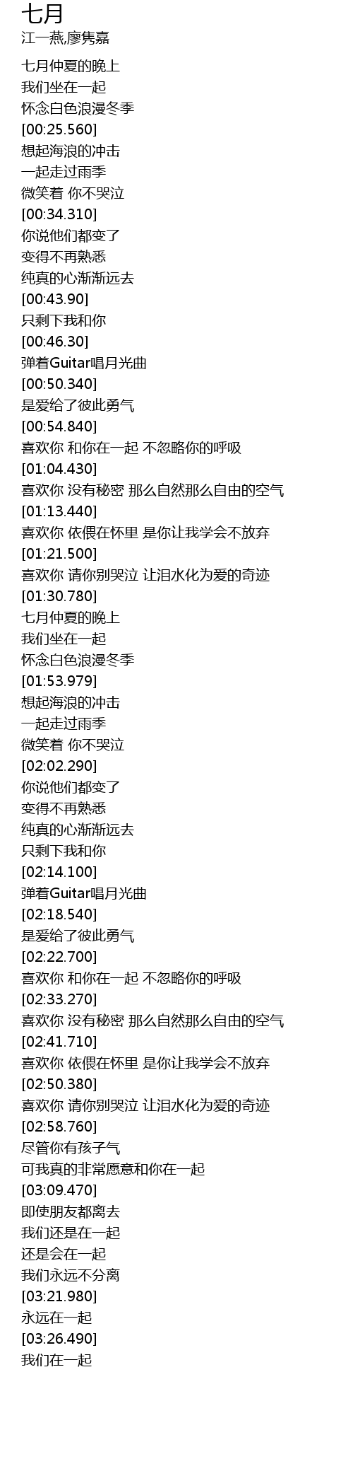 | [02:25.579] | 喜欢你 和你在一起 不忽略你的呼吸 |