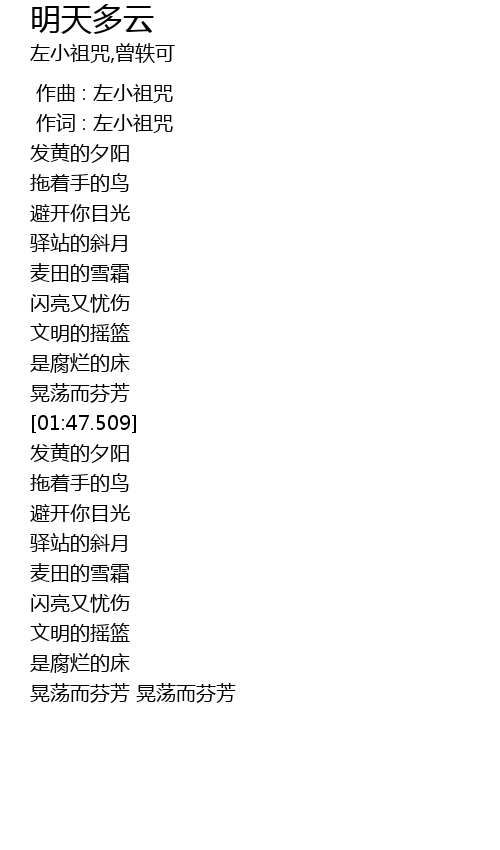| [00:00.00] | 作曲 : 左小祖咒 |