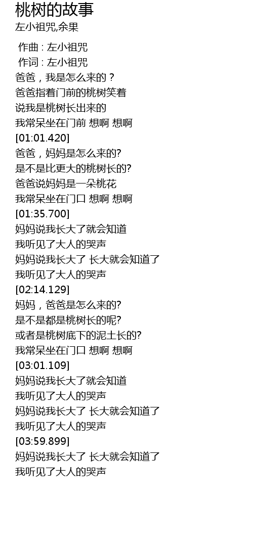 | [00:45.550] | shuō wǒ shì táo shù zhǎng chū lái de |