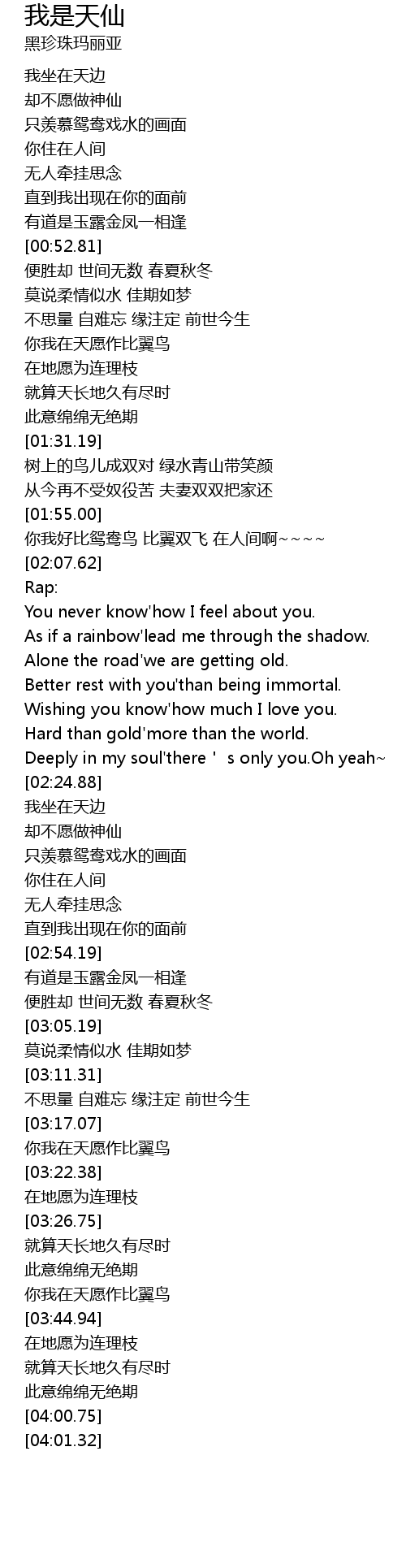 | [03:18.69] | nǐ wǒ zài tiān yuàn zuò bǐ yì niǎo |