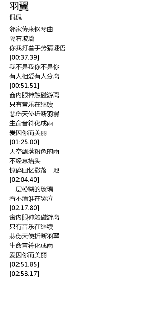 | [02:32.86] | 悲伤天使折断羽翼 |