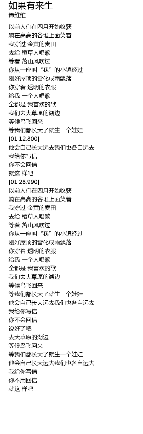 | [01:08.720] | 等我们都长大了就生一个娃娃 |