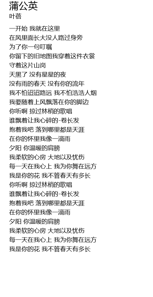 | [01:02.200] | 没有雨的春天 没有你的流年 |