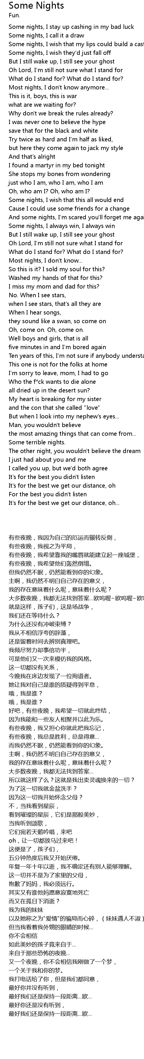 Some nights, I wish that this all would end |