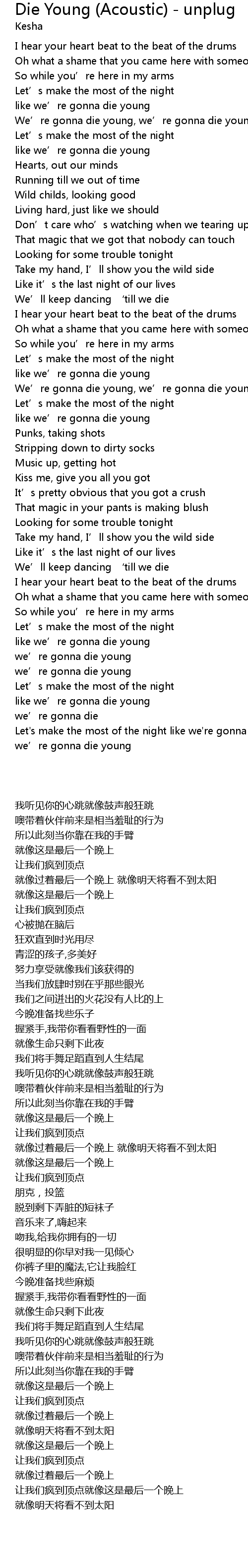 | [00:19.440] | like we' re gonna die young |