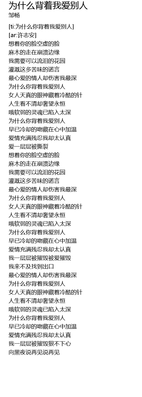 | [00:56.63] | wèi shí me nǐ bēi zhe wǒ ài bié rén |