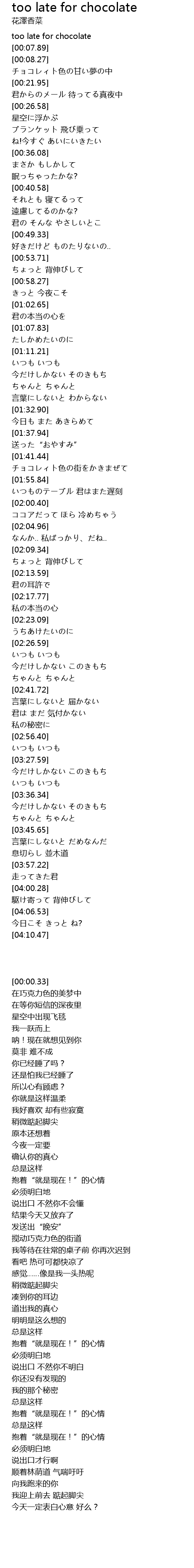 too late for chocolate Lyrics