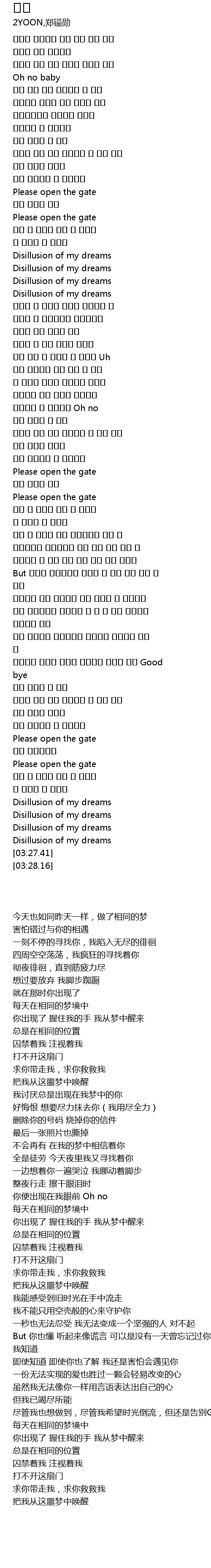 | [00:26.84] | 오늘도 어제처럼 같은 꿈을 꾸고 있어 |