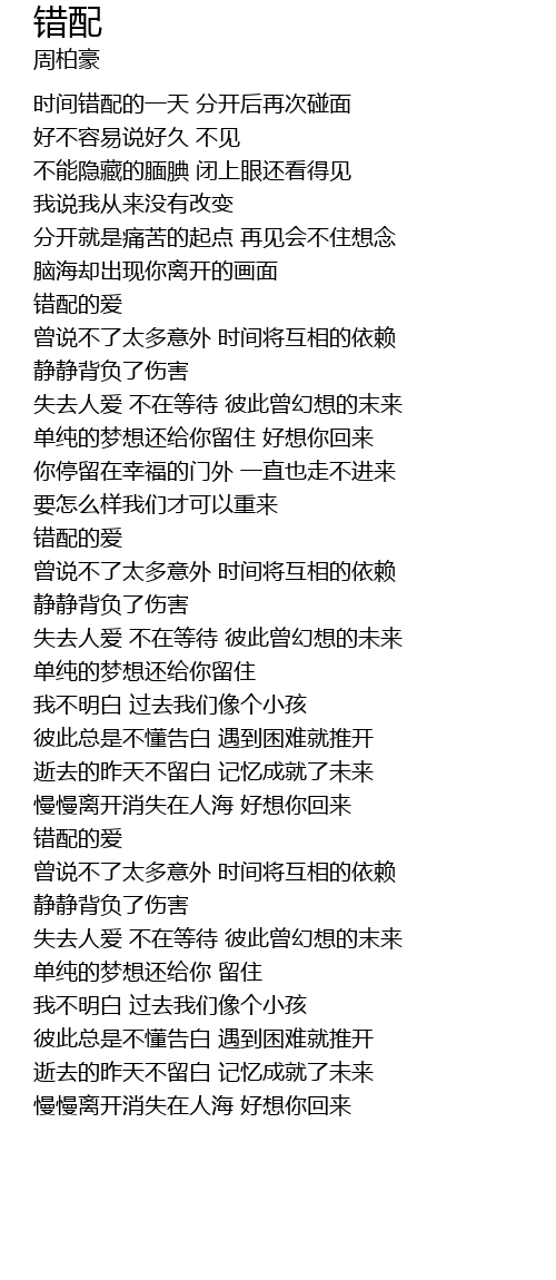 | [01:49.09] | 错配的爱 |