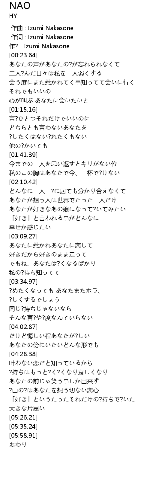 | [00:01.00] | 作词 : Izumi Nakasone |