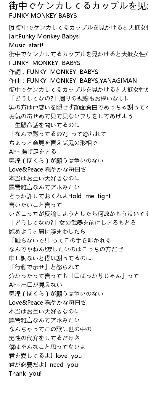 | [00:05.520] | zuo ci: FUNKY MONKEY BABYS |