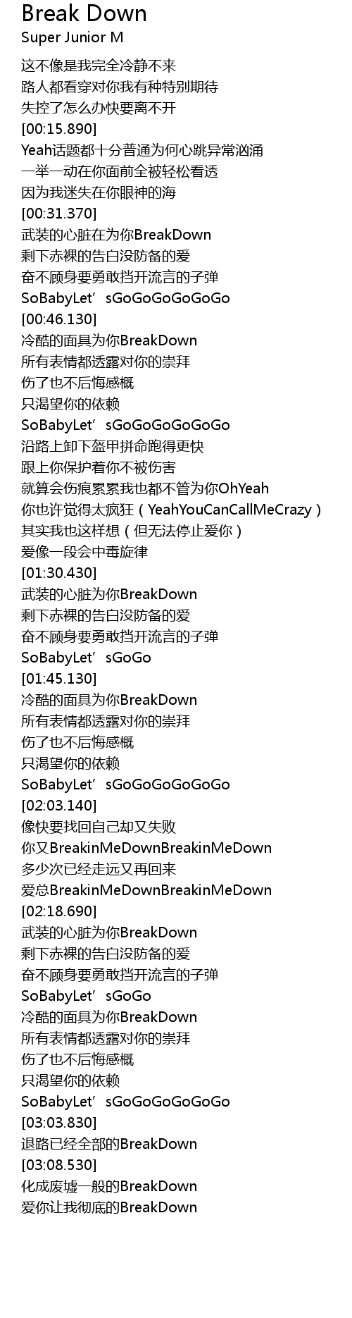 | [03:15.780] | ài nǐ ràng wǒ chè dǐ de BreakDown |