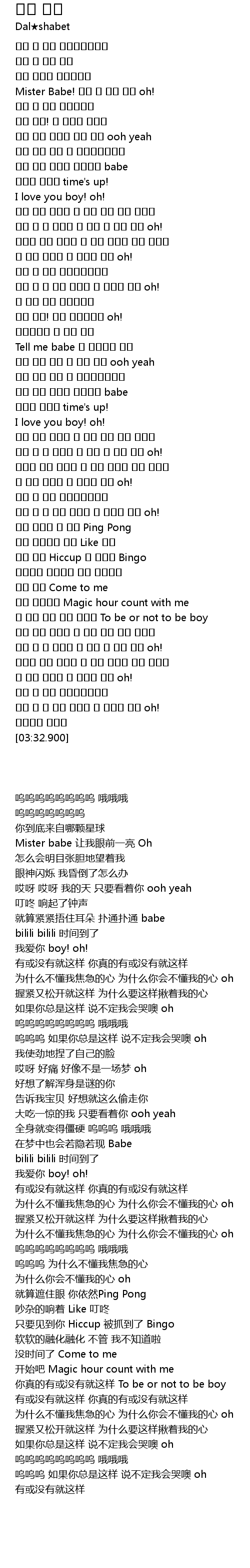 | [03:24.210] | 우우 우 너 자꾸 이러면 나 울지도 몰라 oh! |